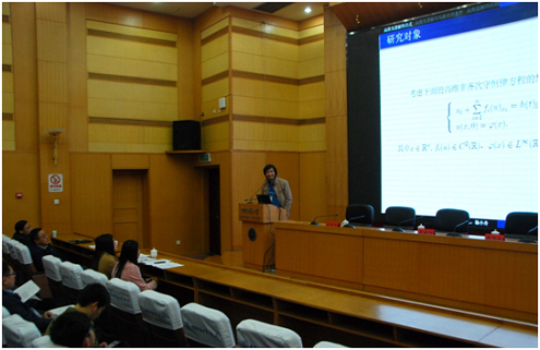 研讨会旨在加强微分方程领域的学术交流,展示微分方程理论研究的最新成果和研究进展,介绍相关理论研究工作在工程,生物,生态等学科中的应用问题,同时为微分方程研究领域的学者和研究生提供交流与合作的平台。此次研讨会分大会报告和分组报告,共25位专家做了报告,其中做大会报告的有杰出青年基金获得者,湖北省工业与应用数学学会理事长,武汉大学数学与统计学院院长赵会江教授,中科院武汉物数所杨小舟研究员,中国生物数学学会副理事长,北京科技大学马万彪教授,华南理工大学数学与统计学院副院长杨启贵教授。会议期间,不同年龄的专家学者和青年学子一起交流讨论,会场十分活跃。