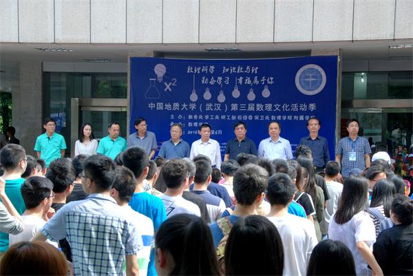2016年5月12日下午14:30点,第三届数理文化季暨数理科普开放日活动在西区基委楼前顺利举行。bat365中文官方网站副校长赖旭龙、学工处处长王林清、研工部部长喻芒清、保卫处处长代清风、bat365中文官方网站党委书记李宇凯、bat365中文官方网站院长刘安平、附属学校党委书记彭冠军、教务处副处长王兴、校团委副书记朱荆萨与各学院师生代表100余人参加了活动。