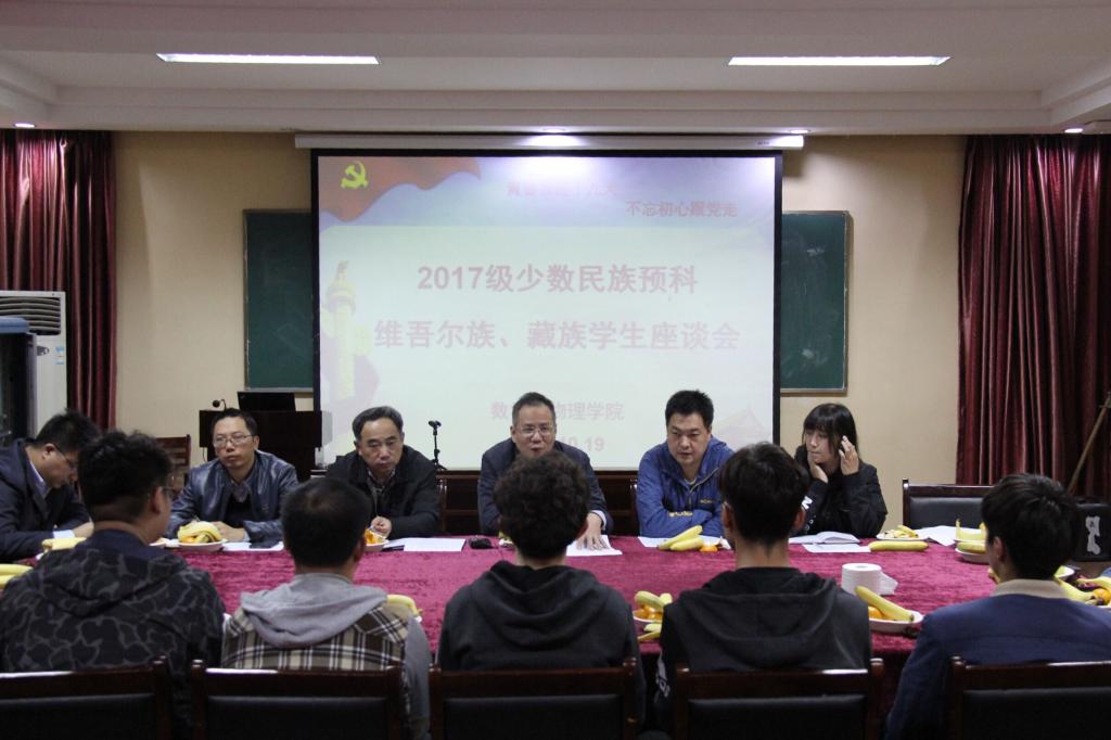 10月19日下午3:00,正值十九大隆重召开的第二天,bat365组织少数民族预科维吾尔族、藏族学生在数理楼212会议室召开座谈会。参加座谈的领导老师有院党委书记李宇凯、副院长程永进、副院长黄刚,学工组的各位辅导员老师以及十五名预科生参会。座谈会由院党委副书记李杰主持。