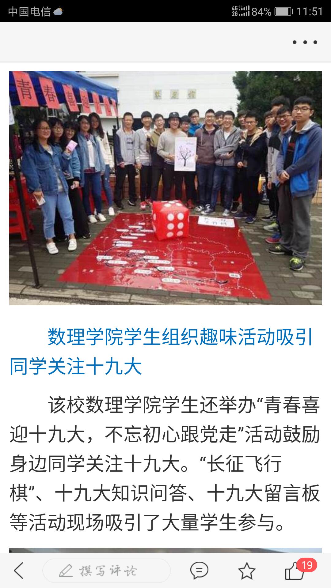2017年10月21日,光明日报客户端报道《bat365中文官方网站(武汉)掀起学习党的十九大报告热潮》,其中bat365“青春喜迎十九大,不忘初心跟党走”活动被报道。详见链接:https://s.cloud.gmw.cn/2016/c/2017-10-21/972932.shtml
