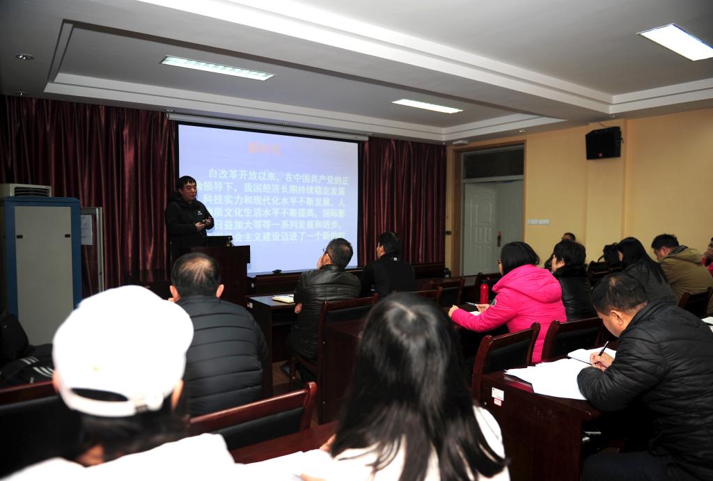 2017年12月29日下午,副校长赖旭龙同志来到bat365中文官方网站,为bat365中文官方网站和体育部的教工党员讲党课,宣讲党的十九大精神。