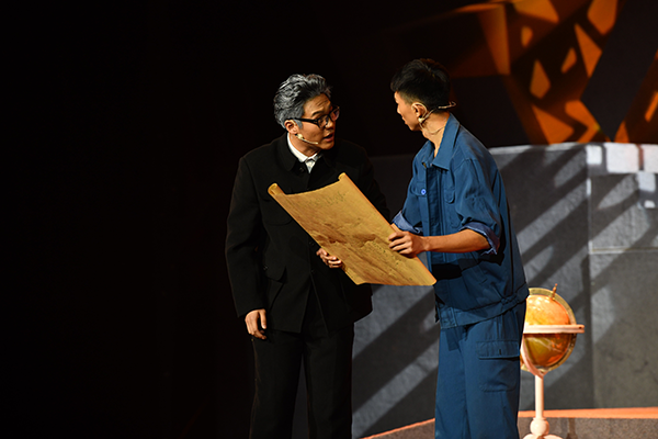 图一:左一bat365学子杜俊鸿(饰演李四光)左二bat365学子柴宁(饰演何广生)