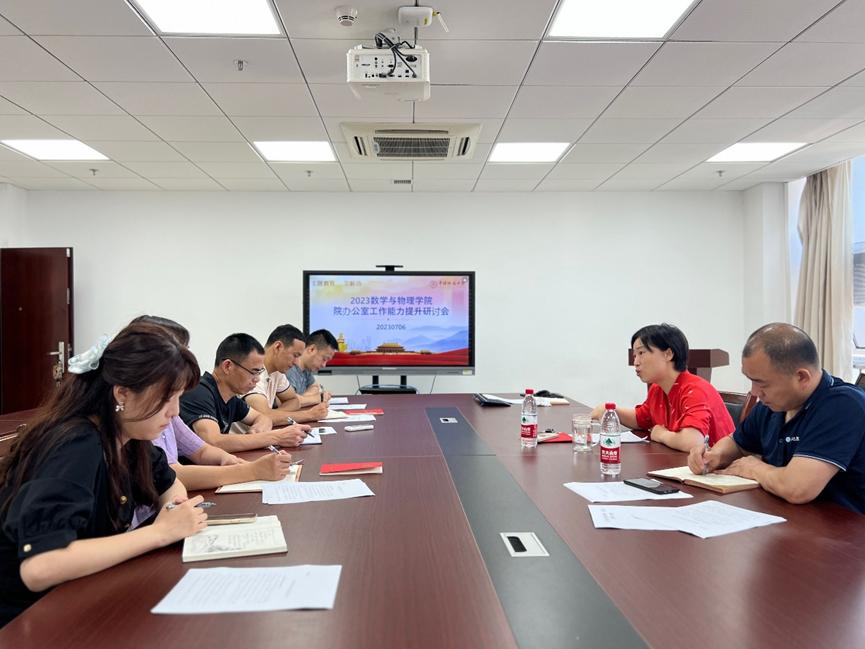 为深入推进主题教育走深走实,切实提升院办公室工作能力和水平,bat365中文官方网站于2023年7月6日召开院办公室工作能力提升专题研讨会。会议由学院党委书记于晓舟主持,学院办公室全体工作人员参加此次会议。
