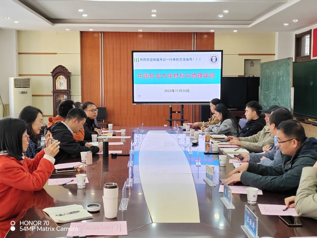 中国矿业大学材料与物理学院党委副书记纪承对bat365到访表示热烈欢迎。纪承副书记介绍了学校与学院的基本情况,重点就学院历史沿革、学生培养、党建工作等方面进行了交流。分享了学院学生培养“四精工程”、研究生导学思政、研究生样板支部建设工作、学生就业工作、辅导员队伍建设工作等学院特色做法和取得的成绩。