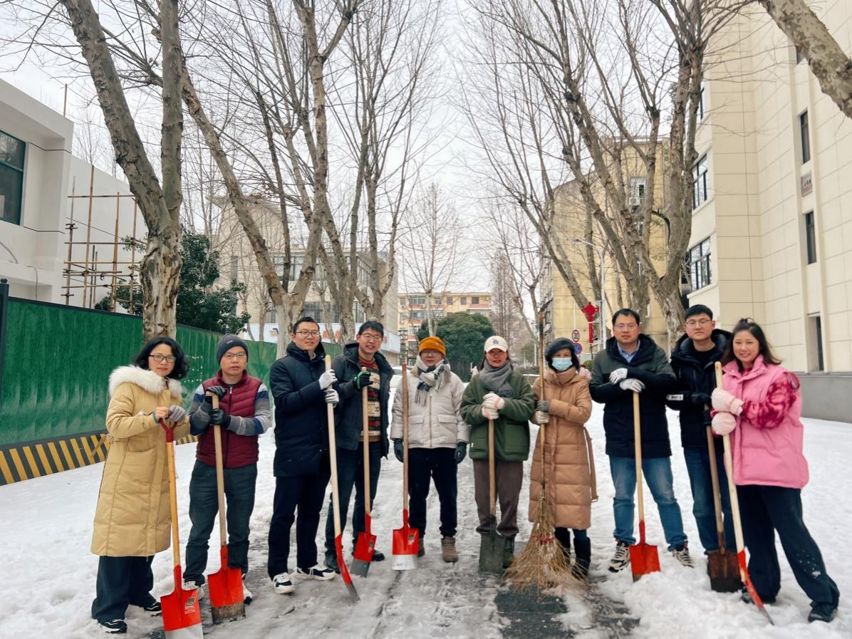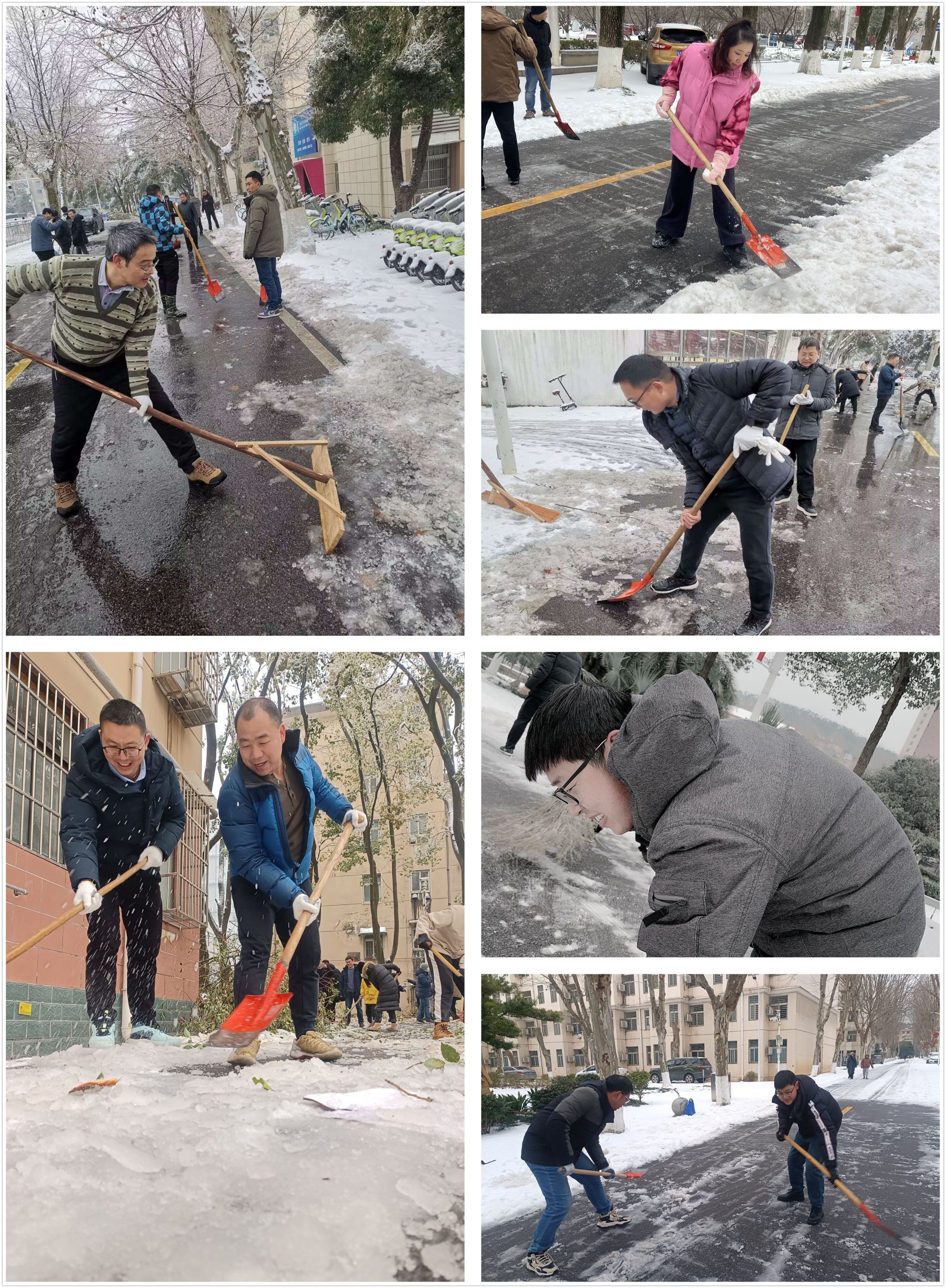 新学期开学在即,武汉再次出现极端雨雪冰冻天气。bat365中文官方网站党委第一时间响应学校扫雪除冰清障志愿服务工作号召,迅速部署,广大教职员工积极踊跃报名,先后共有13人以实际行动战风雪,破寒冰,为师生安全保驾护航,生动诠释了“一个支部就是一座堡垒,一名党员就是一面旗帜”。
