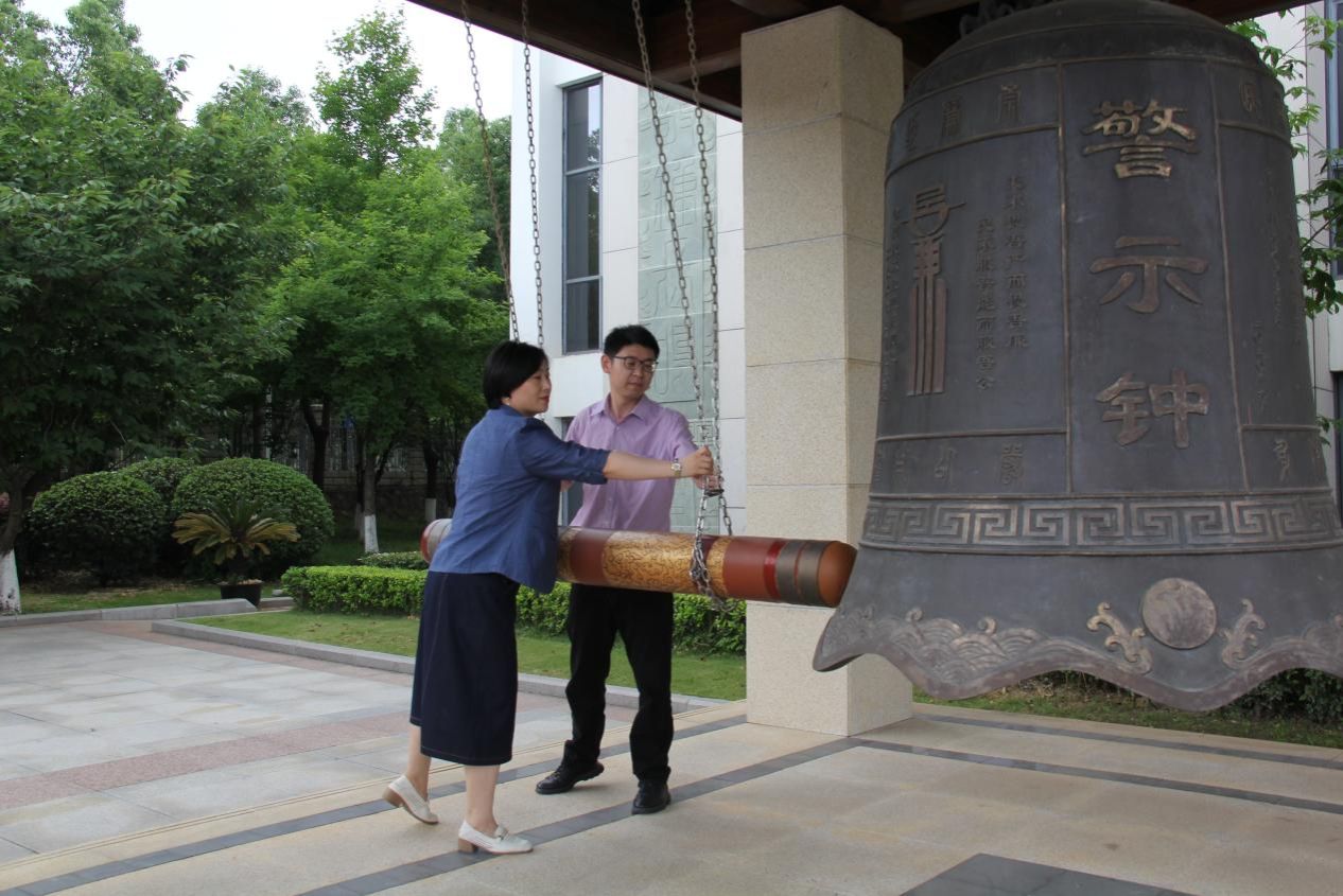 参观结束后,大家来到基地廉政文化广场,面向警示钟庄严肃立。bat365党委书记于晓舟、院长魏周超敲响了廉洁警示钟,三声警钟响起,入耳入脑入心,提醒党员干部时刻保持自警自重自省。
