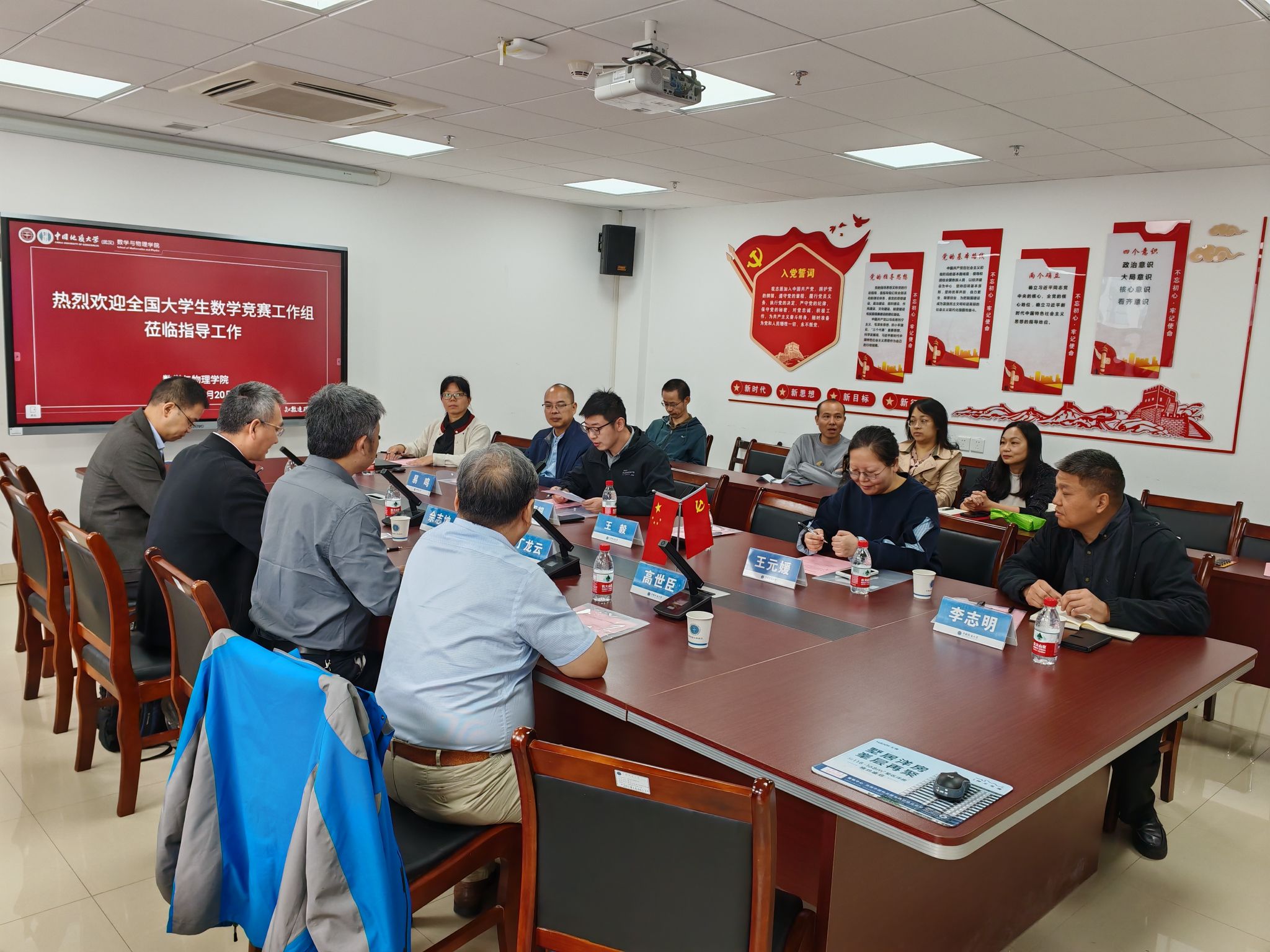 10月20日上午,bat365邀请中国数学会常务理事兼数学竞赛委员会副主任、全国大学生数学竞赛工作组组长、北京航空航天大学佘志坤教授,中国数学会常务理事、天津市数学会理事长、南开大学数学科学学院院长丁龙云教授,湖北省数学会常务理事、华中师范大学数学与统计学学院院长周远扬教授,bat365中文官方网站(北京)bat365中文官方网站院长高世臣教授,湖北省数学学会秘书长、全国大学生数学竞赛湖北赛区竞赛委员会主任、武汉大学数学与统计学院樊启斌教授等专家一行莅临学院指导工作。bat365院长魏周超教授,信息与计算科学系主任易鸣教授,大学数学教学部主任郭艳凤教授,数学与应用数学系主任王毅副教授以及数学竞赛负责人与指导老师参与座谈。会议由魏周超教授主持。