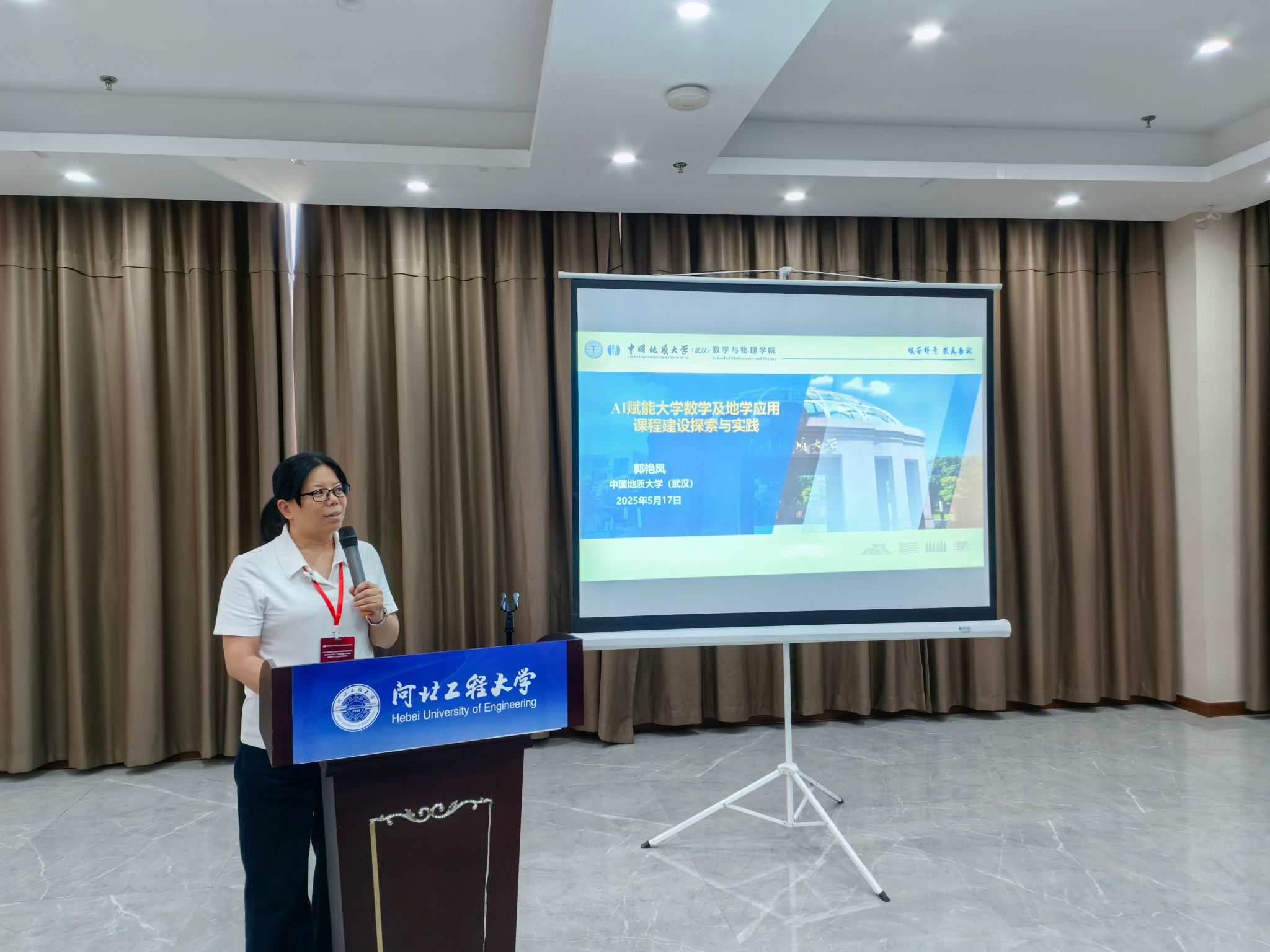 bat365中文官方网站副院长郭艳凤教授应邀出席授牌仪式,并在大会作了《AI赋能大学数学及地学应用课程建设探索与实践》的主题报告,分享了bat365在AI赋能大学数学教育教学中的主要做法和举措,并与参加会议的各高校教师进行了热烈的交流和探讨。