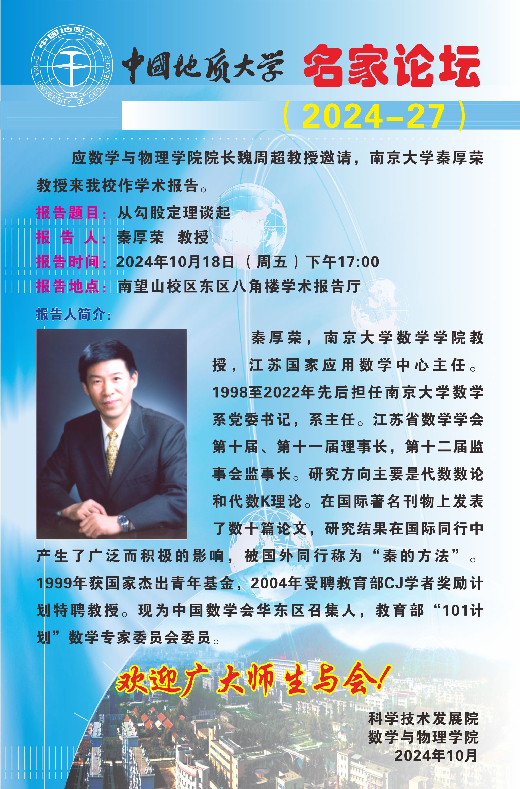 2024年10月18日秦厚荣教授学术讲座:从勾股定理谈起