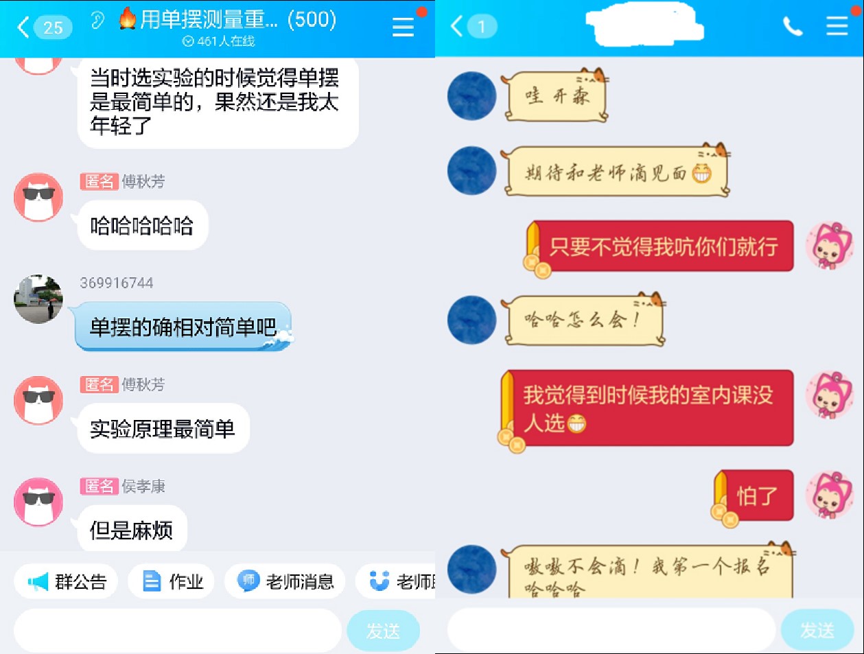 在实际操作过程中,并没有因为虚拟实验,降低了标准和质量。如金三梅老师的“用单摆测量重力加速度”实验,实验名字听起来简单,因此选的人非常多,以至于首次选择该实验的学生非常多,两个500人的QQ群仍然不够容纳所有学生。但学生做完这个看似简单的实验后,在实验指导群中匿名留言:“金老师对实验数据的要求很高,这个实验不好混呐”。当然,在严格要求下,同学们也学会了实验数据的处理,不确定度的计算等,培养了对待科学的严谨态度。
