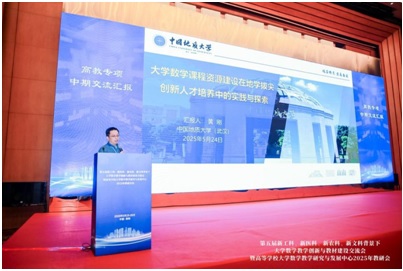 会议期间,高等学校大学数学教学研究与发展中心主任李继成教授解读了2024年度工作总结及2025年立项指南,鼓励高校围绕“AI + 数学教育”“新工科数学课程群建设”等方向开展联合攻关。在分组讨论环节,bat365黄刚教授做了“大学数学课程资源建设在地学拔尖创新人才培养中的实践与探索”的项目汇报,介绍了bat365大学数学与地学交叉教学团队围绕地球科学与大学数学课程的融合,构建知识点对应的应用体系,形成具有代表性的课堂教学案例,组织编写具有新工科特色的系列教材、推动课程资源数字化建设,积极开展教学实践与探索,提升学生交叉学科素养与应用能力。报告受到了与会同行的高度赞扬。