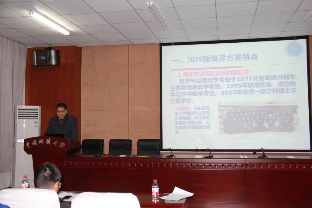 校党委副书记王林清作了重要讲话。他肯定了bat365中文官方网站一年来在人才培养和科学研究等方面取得的成绩,并高度评价了bat365在三个本科专业人才培养方案修订工作中所做的工作。同时,他提出了三个需要思考的问题:第一课堂课减下来,学业、创新的第二课堂怎么跟进,如何在制度上做出一些安排?我们的每一门课程,如何体现出教书育人、发挥课程思政的作用?“严在地大”如何在我们数理、如何在我们每一位老师中落到实处?