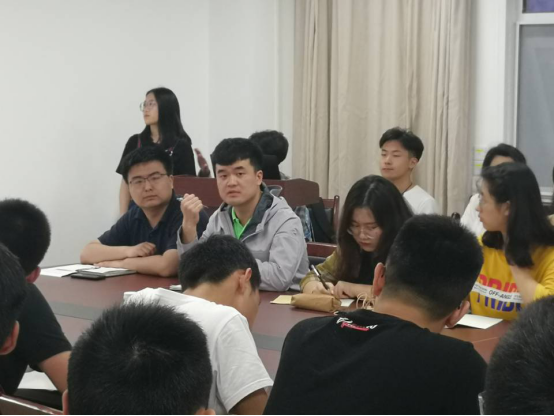 首先,学工助理李申从自身出发,为同学们介绍了他作为学生骨干时的一些经历,希望同学们能在做学生工作的过程中不仅仅是为了锻炼自己,更应该朝着无私奉献和服务同学的方向努力。随后是学生代表发言。研一党支部书记阚婷婷同学详细讲解了学生党员在各方面应该起到一个什么样的作用,鼓励同学们要勇于担当、奉献自我,将爱国、民主、科学、进步牢记于心,对同学们起到了引导与榜样的作用。接下来有其余两位学生代表——本科生121181支部团支书胡华潇同学与柯思雄同学发言。这两位同学着眼于五四精神中的爱国情怀,认为五四精神不仅仅局限于五四运动,也不仅仅局限于过去那个年代。五四精神具有鲜明的时代性特点,我们每一位青年学生都应该与时俱进,在新时代赋予五四精神更多的内涵。