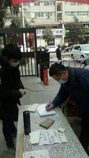 抗疫期间,bat365中文官方网站122181班李钰龙同学主动报名参加了当地社区抗疫志愿服务活动,他主要负责社区出入人员的登记及体温测量的工作。